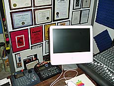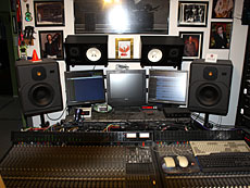 72 tracks of non-linear recording via three (3) Mackie HDR-24s with Remote 48 and 32 tracks of ADAT XT20 Type II recording or file transfer capability with BRC through a 56 input Mackie console. Close field monitors include KRK 9000B studio monitors, Yamaha NS-10s, and Auratone Primo Sound Cubes. Amplification is accomplished by two (2) Yamaha P-2200 stereo amps. Computer system utilizes Apple iMac performance with extended hard disk capability through auxiliary disk drives providing sequencing, computer assisted composition, sound design and editing functions. Resident software includes Sonar 8 Producer, Studio Vision, Digital Performer, Cubase, etc., as well as, many applications for multimedia, notation, sound and patch libraries and editors, and sound design. Pro Tools and Sonic Solutions capabilities expected in the future. |